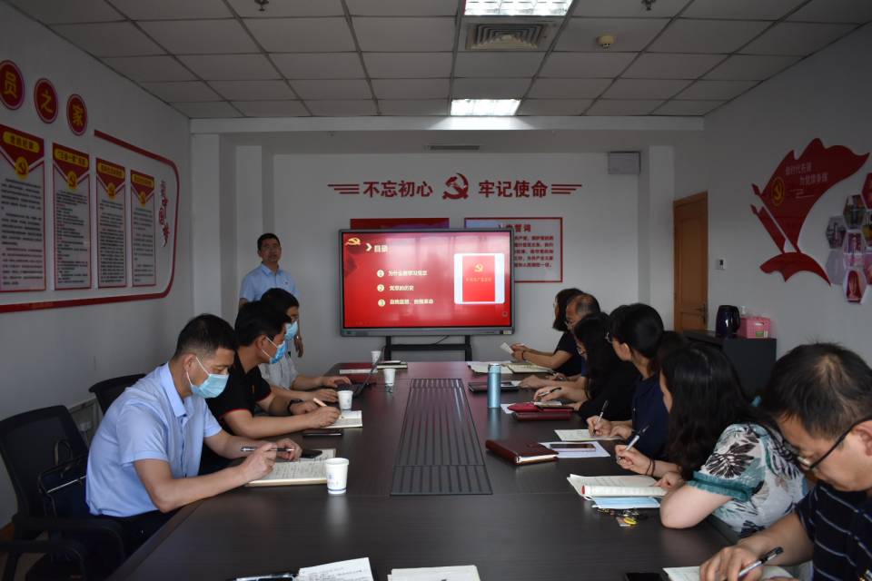 为庆祝中国共产党成立101周年,喜迎党的二十大胜利召开,6月21日下午,太阳成集团tyc9728党总支理论中心组开展《中国共产党章程》专题学习。学习由党总支书记修彩波主持,第二党支部书记刘如飞同志作《认真学习<中国共产党党章> 坚定理想信念》专题辅导。