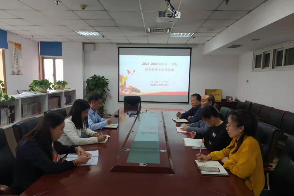 为了贯彻落实《新时代学校思想政治理论课改革创新实施方案》, 进一步提高原理课教师的教学能力和教学效果,更加准确地把握2021年版教材修订的基本精神、主要内容、教学重点难点以及教学中应注意的问题,10月28日原理教研部召开2021-2022学年第一学期集体备课会,教研部全体教师参加,会议由教研部主任杨先梅老师主持。