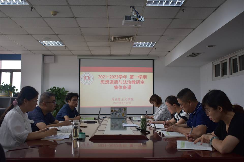 为进一步贯彻落实习近平总书记在思政课教师座谈会上的讲话精神,持续推动思政课改革创新,不断增强思政课实效性与亲和力,提升思政课教师素养,提高思想政治理论课教育教学质量,8月27日上午,思想道德与法治教研部召开2021-2022学年第一学期集体备课会,教研部全体教师参加,会议由教研室主任王芳老师主持。