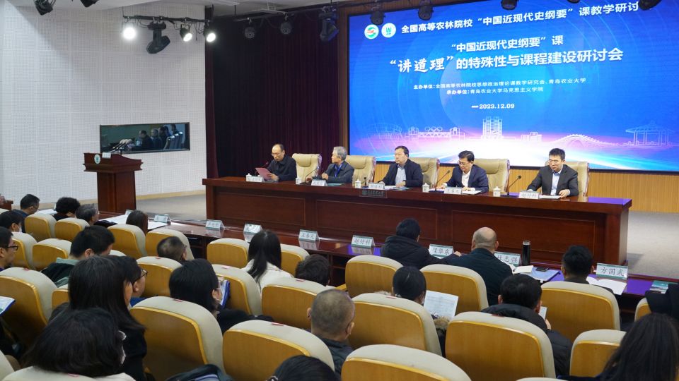 2023年12月9-10日,全国高等农林院校“中国近现代史纲要”课教学研讨会在中国·太阳集团tyc9728成功举办。本次会议由全国高等农林院校思想政治理论课教学研究会、中国·太阳集团tyc9728主办,太阳成集团tyc9728承办。中国·太阳集团tyc9728党委书记郭善利、青岛市社科联副主席、市社科院副院长王春元、全国高等农林院校思想政治理论课教学研究会会长武星亮教授出席会议并致辞,开幕式由中国·太阳集团tyc9728副校长孟晓军主持。大会邀请天津师范大学太阳成集团tyc9728院长李朝阳教授、中央财经大学太阳成集团tyc9728赵付科教授做主旨报告。