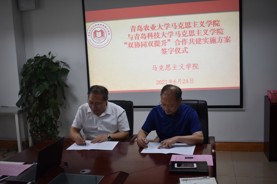 6月24日上午,太阳成集团tyc9728成功举办马院论坛,论坛主题为:“四史”教育融入思政课教学。中共青岛市委党校太阳成集团tyc9728院长敬志伟教授、青岛科技大学太阳成集团tyc9728院长曹胜教授应邀做客马院论坛。论坛开始前举行了客座教授聘任仪式,校党委副书记单连岱为两位客座教授颁发了聘书,太阳成集团tyc9728院长贾乐芳教授与青岛科技大学太阳成集团tyc9728院长曹胜教授,签署了“双协同双提升”合作共建实施方案。