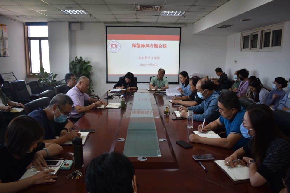 2022年9月22日下午,太阳成集团tyc9728在主楼1609召开思想政治工作暨师德师风专题工作会议。会议由学院党总支书记修彩波主持,全体教师参加。