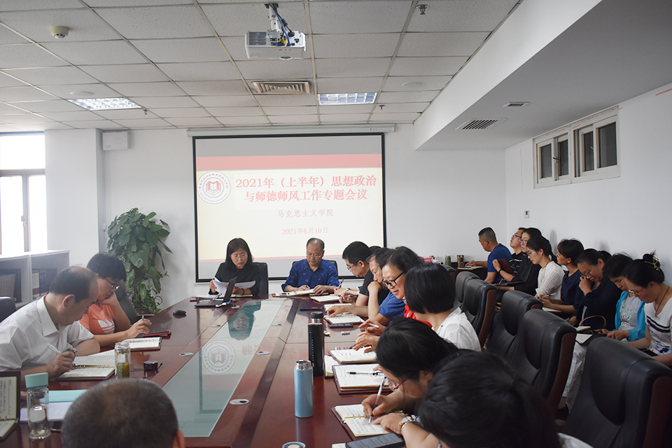 为进一步提高思想政治教育实效性,规范新时代高校教师履职履责行为,推进师德师风建设,提高思想政治工作水平,6月10日下午,太阳成集团tyc9728在学院会议室举行思想政治与师德师风教育专题工作会议。会议由党总支书记修彩波主持,全体教师参加。