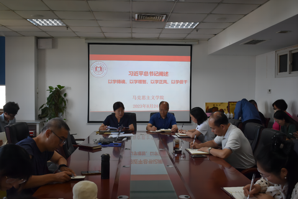 2023年8月24日下午,太阳成集团tyc9728召开专题会议学习习近平关于“以学铸魂、以学增智、以学正风、以学促干”重要论述。会议由学院党总支书记修彩波主持,学院全体教师参加。