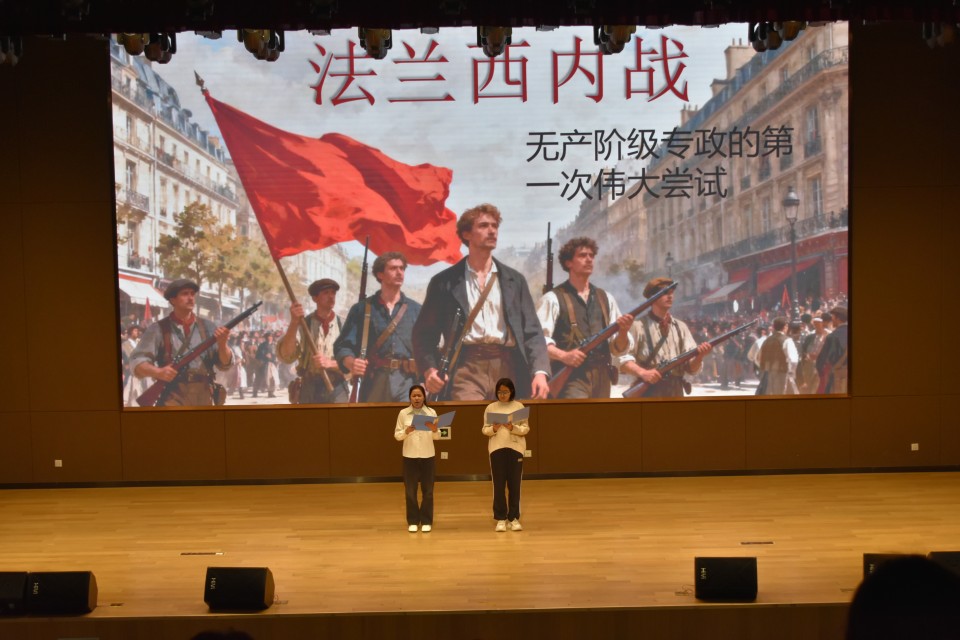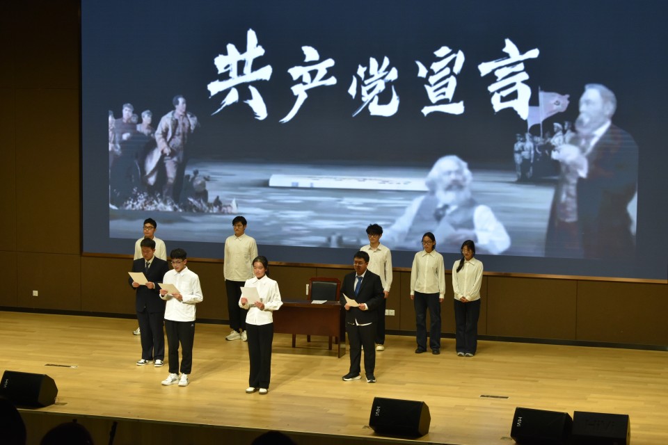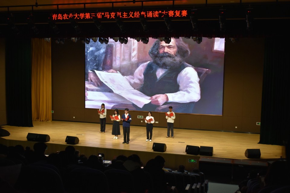 自大赛启动以来,平度校区青农学子积极响应,踊跃参与。在马院教师的精心组织指导下,经过班级初赛的广泛遴选,22支队伍晋级复赛,又经过复赛的激烈比拼,10个小组脱颖而出,成功晋级决赛。在决赛舞台上,各参赛小组围绕《共产党宣言》《法兰西内战》《在马克思墓前的讲话》《青年在选择职业时的考虑》《神圣家族》《为人民服务》等马克思主义经典篇章,以原文诵读为基础,融入情景演绎、话剧改编、歌曲演唱、配乐朗诵等创新形式,为现场观众带来了一场兼具思想性、艺术性和观赏性的视听盛宴。最终评选出一等奖2组、二等奖3组、三等奖5组。