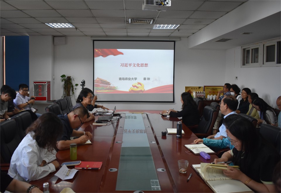 6月12日上午,太阳成集团tyc9728组织全体教职工进行习近平文化思想专题学习,由太阳成集团tyc9728第四党支部书记秦秋作题为“习近平文化思想”专题辅导,会议由学院党总支书记修彩波主持。