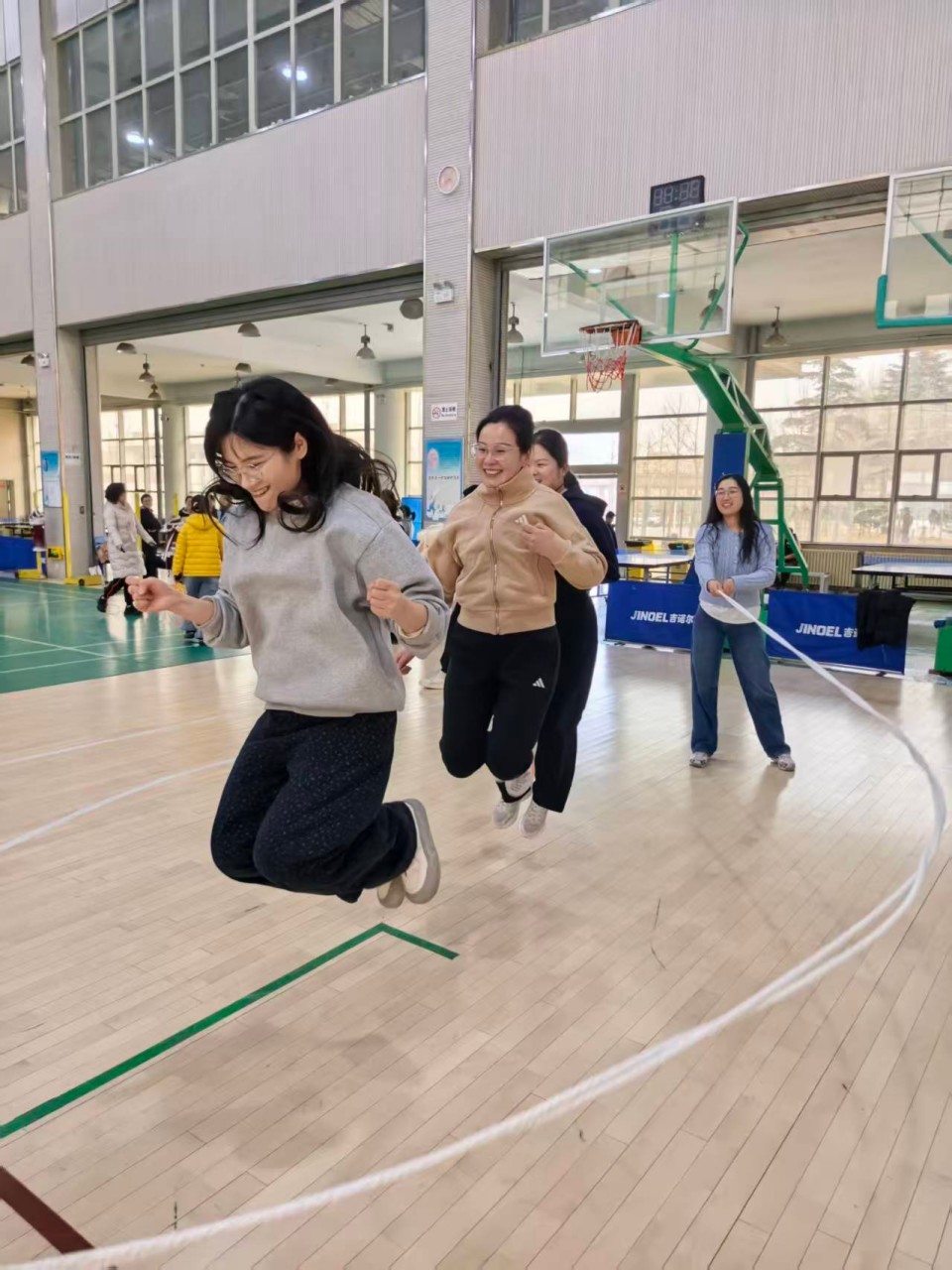 “绳彩飞扬跃动青春,皮筋翻飞绽放活力”。学院女教职工在跳大绳与跳皮筋比赛中共同度过了一段欢乐而充实的时光。文体馆里洋溢着欢声笑语,加油声、喝彩声此起彼伏。