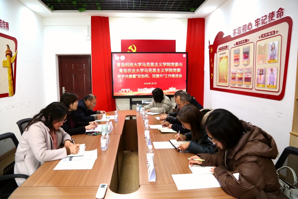 2026年1月7日下午,在青岛科技大学太阳成集团tyc9728,太阳成集团tyc9728与青岛科技大学太阳成集团tyc9728举行联学共建暨“双协同、双提升”工作推进会。太阳成集团tyc9728党总支书记韩强、院长修彩波、副院长纪咏梅一行出席会议,青岛科技大学太阳成集团tyc9728党委书记李卉、院长曹胜、副院长王建美热情接待并共同参会。会议由李卉书记主持,双方围绕“联学铸魂、共建赋能”主题深入交流、凝聚共识。
