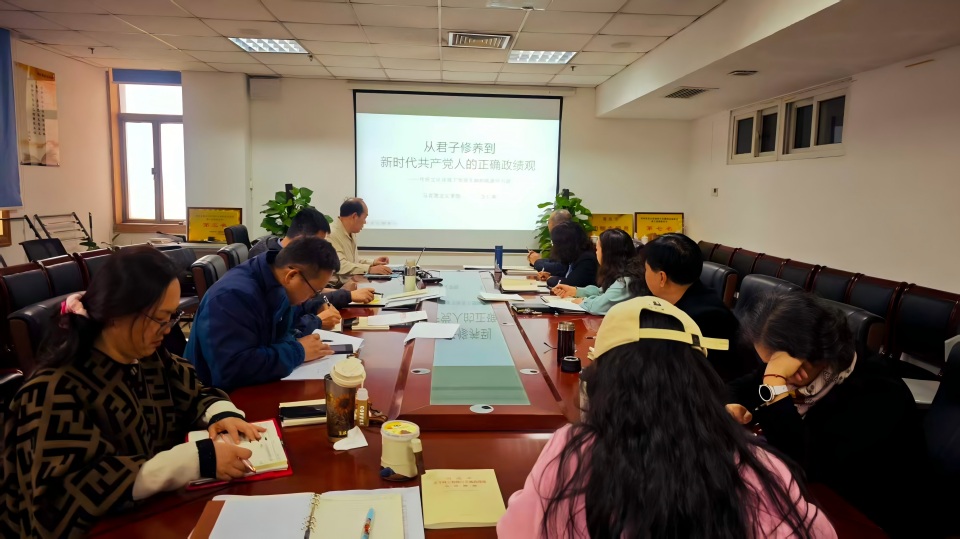 会上,邀请学院王仁高副教授作题为《从君子修养到新时代共产党人的正确政绩观——传统文化视域下党员干部的修身与为政》专题辅导报告。报告围绕四大维度展开:从孔子的政治德性原则切入,阐释新时代中国共产党人的政治观;以孔子的政治理想为依托,剖析新时代中国共产党人的政绩观;结合孔子的君子理想人格,解读中国共产党人的党性原则;最终落脚于从君子修养到新时代合格党员领导干部的实践路径。王仁高系统梳理了中华优秀传统文化中“修身为政”的思想精髓,清晰阐明了儒家“为政以德”“修身齐家治国平天下”理念与当代中国共产党人政绩观的内在传承关系,为参会人员提供了传统文化与党建理论深度融合的全新视角。