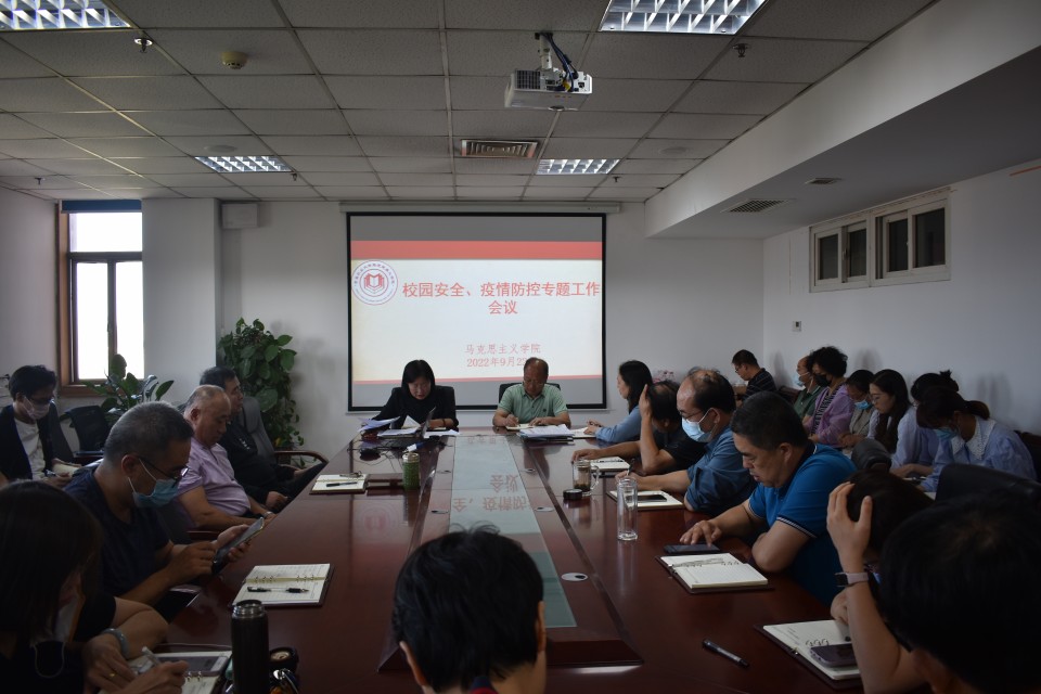 2022年9月22日下午,太阳成集团tyc9728在主楼1609召开校园安全会议,部署近期校园安全与疫情防控工作。会议由学院党总支书记修彩波主持,全体教工参加。