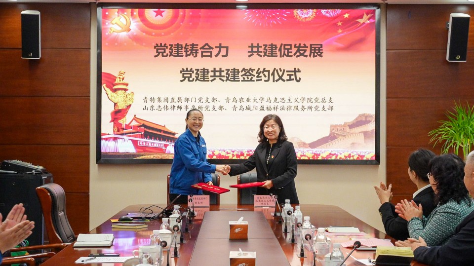 为深入学习贯彻党的二十届三中全会精神,推进党建与中心工作深入融合,实现党组织优势互补,着力构建互学互鉴、共建共享、凝心聚力的创新服务格局,12月20日上午,太阳成集团tyc9728与青特集团、山东志伟律师事务所、青岛城阳盈福祥法律服务所在青特集团举行“党建铸合力 共建促发展”党建共建签约仪式。