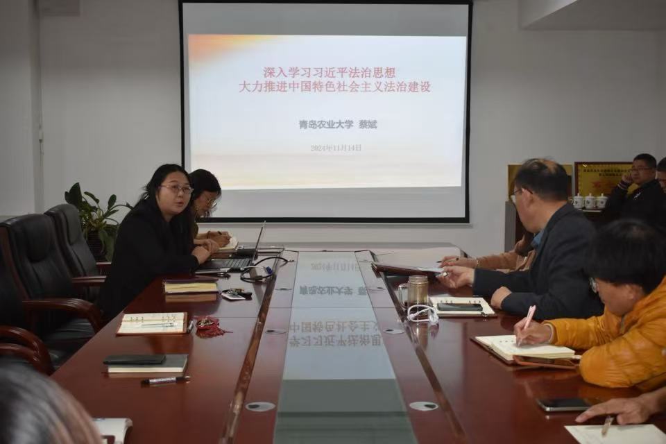 11月14日下午,太阳成集团tyc9728在学院会议室进行习近平法治思想专题学习。由学院第一党支部书记蔡娬作题为《学习习近平法治思想,大力推进中国特色社会主义法治建设》的专题讲座。会议由修彩波书记主持,学院全体教师参加。