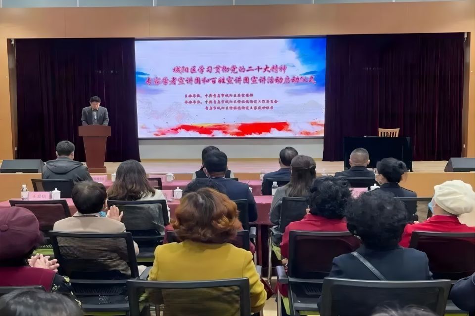 11月25日上午,在惜福镇街道王家盛世社区,城阳区举办了学习贯彻党的二十大精神专家学者宣讲团和百姓宣讲团宣讲活动启动仪式。