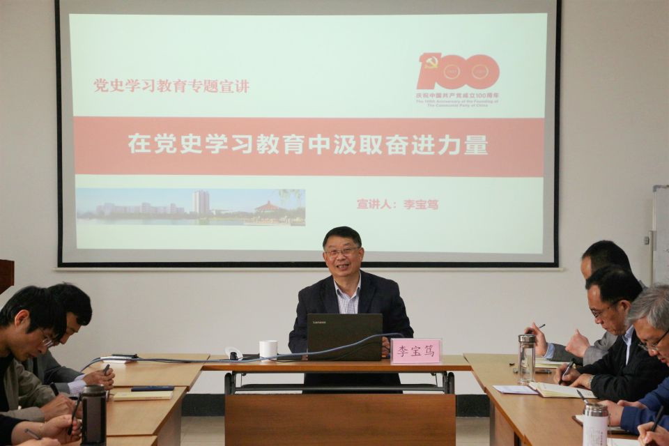 校长刘新民为分管单位的党员干部和学生骨干作党史学习教育专题宣讲。刘新民以“传承红色基因,推进伟大事业”为题指出,开展党史学习教育是牢记初心使命,推进中华民族伟大复兴历史伟业的必然要求;是坚定信仰信念、在新时代坚持和发展中国特色社会主义的必然要求;是推进党的自我革命,永葆党的生机活力的必然要求。