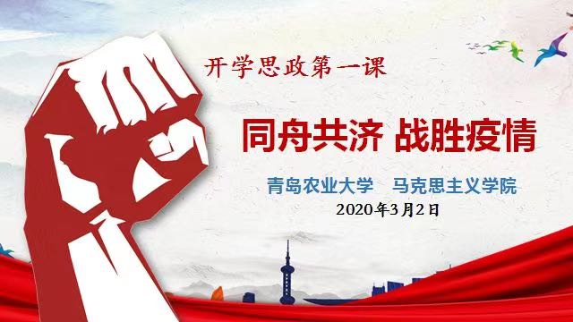 为讲好网络教学启动后的“思政第一课”,青岛农大太阳成集团tyc9728提前部署、精心组织,结合课程特点将防疫历史题材和现实题材融入课堂之中。在集体备课的基础上,统一制作了《同舟共济战胜疫情》课件,教师们结合课件使用,本着“一课一策”原则,融合课程内容设置与疫情相关讨论题目,引导学生树立家国情怀,坚定“四个自信”。